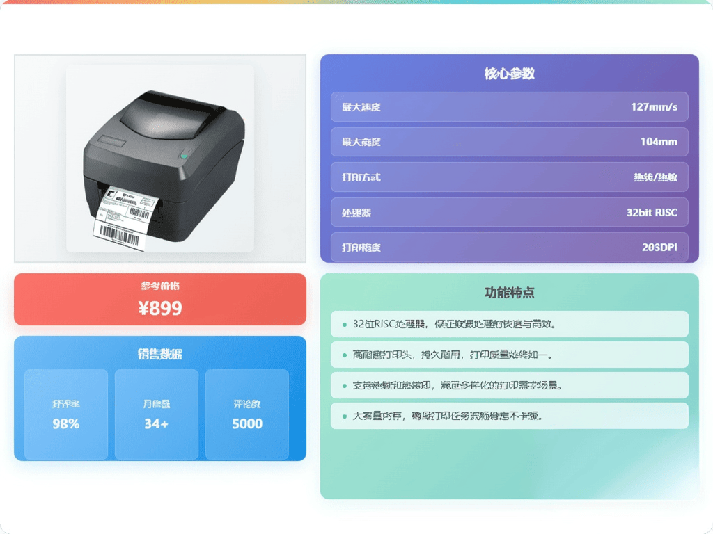 亮点:高速152mm/s打印、蓝牙双模支持、耐磨打印头