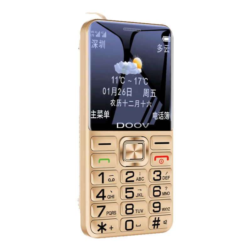 朵唯G1000以其先进的4G全网通技术,提供更流畅的视频通话体验,非常适合老年人使用。它特别为老年人设计的大字体和语音播报功能,极大地方便了他们的日常使用。