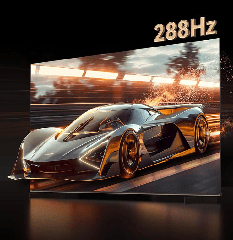 此外,它的刷新率支持288Hz超高刷新率,特别适合喜欢追剧和打游戏的朋友。画面流畅得让人忍不住多看几眼,运动画面几乎没有拖影感,无论是观看体育赛事还是玩FPS游戏,都能轻松应对。