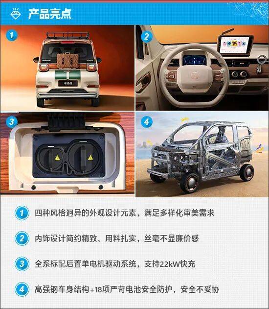 虽然只是一款入门级纯电动微型车,但是2026款奇瑞冰淇淋在安全性方面却并未进行任何妥协。其整体采用高强钢车身结构,多重防护在遇到撞击时能够有效保证车内安全。此外,18项严苛的电池安全防护也能够让用户在日常使用时更加安心。