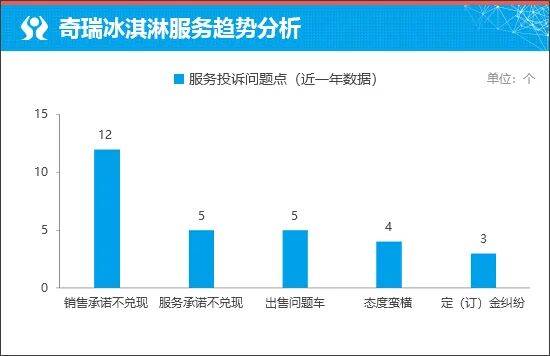 在衡量新车售后服务口碑方面,我们将通过企业对于车主投诉的回复情况进行分析,相对客观地对于新车未来的售后服务口碑有所预判。据车质网数据显示,近一年奇瑞冰淇淋的投诉回复率为94.6%,可见厂家对于车主的诉求较为重视,对于已出现的问题解决态度比较积极。