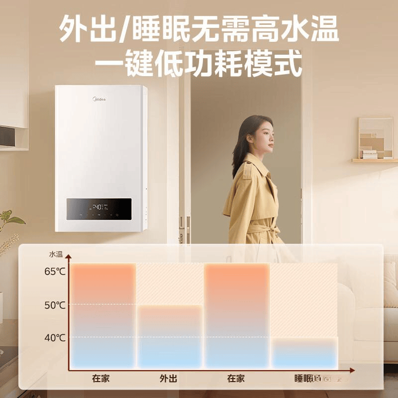 3. 手机远程控制:美的壁挂炉支持APP远程操控,用户可以随时随地调节采暖温度或热水用量。特别方便在下班回家前提前预热,或者出门时关掉暖气,省心又智能。