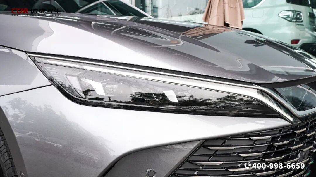 茶晶灰外观如晶石淬炼,阳光下泛着细腻金属光泽,低调中自带高级质感,商务家用都得体。龙鳞铠甲点阵式格栅层层递进,气场全开,中央发光车标与龙须灯带呼应,解锁瞬间流光灵动。车身侧面线条流畅修长,溜背造型优雅动感,贯穿式腰线拉伸视觉比例。17英寸低风阻铝合金轮毂造型精致,兼顾运动与舒适。尾部饱满大气,中国结贯穿式流光瑞结尾灯点亮即国风美学,喜庆又醒目;专属天神之眼智驾标识,彰显科技身份,底部扩散器搭配简洁的线条,勾勒出干净利落的背影,稳重而不失科技韵味。