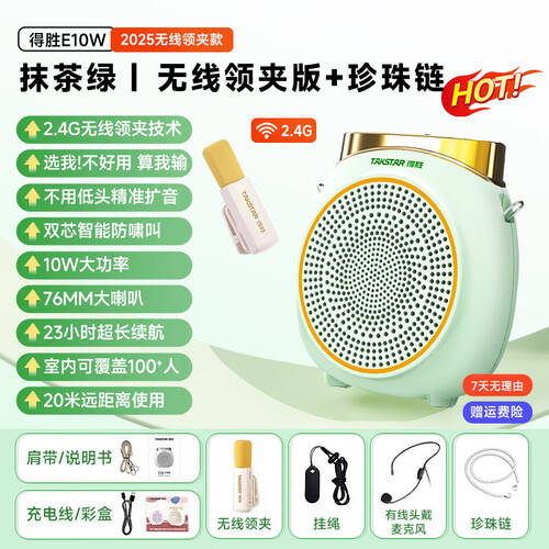 得胜E10W扩音器不仅仅是一款普通的扩音设备,它的每一个设计细节都经过精心考虑,旨在提升用户体验。首先,它采用了先进的2.4G无线领夹技术,让您在教学或导游时无需被电线束缚,自由活动,畅所欲言。您可以轻松地将扩音器夹在衣服上,轻便好携带,既时尚又实用。