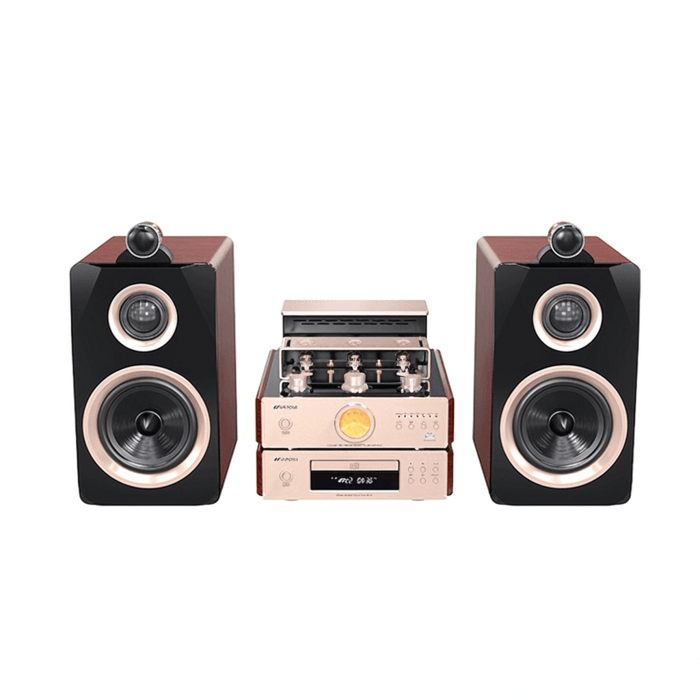 - 功能丰富:套装内还包含了CD播放器,支持HDCD/CD/MP3/WMA等多种格式,还有数字光纤/同轴音频输出,蓝牙5.0无线连接,USB播放,LED屏显,FM收音等功能,满足你对音乐的多种需求。