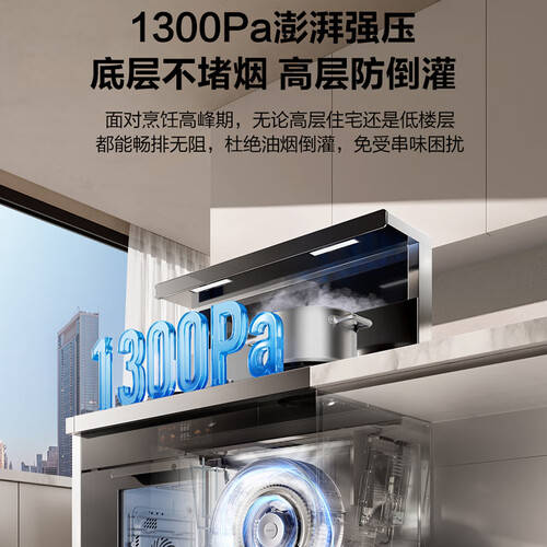 1、先进吸烟技术:其1300Pa的强压油烟机设计,确保油烟不再倒灌,保持厨房的清新。