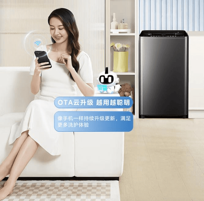 这款洗衣机支持APP智能遥控,用户可以随时远程操控洗衣程序,预约洗衣时间,查看洗涤进度,也可以调节洗涤参数。高清炫彩屏显示界面简洁直观,操作方便,还配备童锁和微动开关,既保障安全又提升使用体验。
