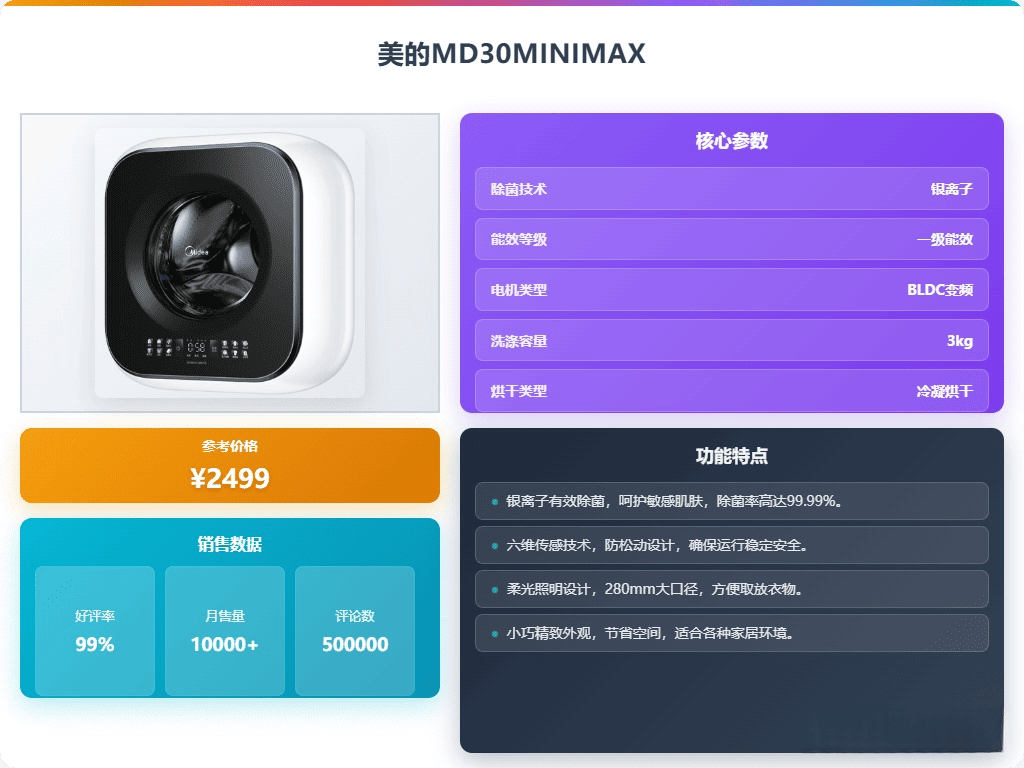 不得不说,现在洗衣机市场竞争激烈,2500元内的美的洗衣机可选的还真不少!各种宣传让我心痒痒,但我知道不能光听商家的吹嘘,还得看看真实的用户反馈。毕竟,谁也不想买回去发现不好用,或者洗不干净,那可就太糟心了!所以,我整理了一份详细的测评,主要针对容量、除菌和智能这几个方面,争取给大家选出真正值得入手的。下面给大家挑了10款,感兴趣的可以了解一下。
