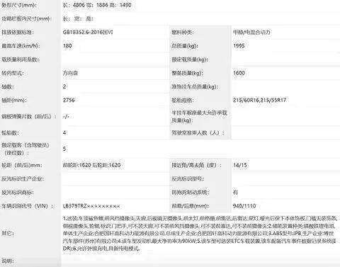 吉利银河星耀6甲醇插混版申报图曝光!