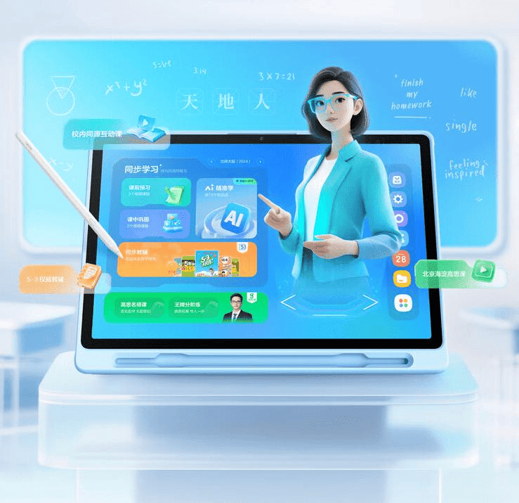 这款平板内置强大的AI大模型,搭载双核AI智能系统,能根据孩子的学习情况提供个性化建议和学习方案,真正实现智能学伴。丰富的课程内容由清华北大名师研发,紧贴新课标,涵盖3-18岁全学段、各种学科。