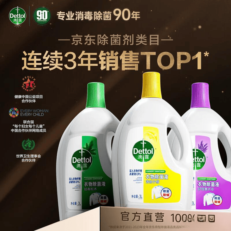 品牌介绍:滴露,这个名字在消毒液领域可谓是全球知名的“老大哥”。自1932年诞生以来,滴露在杀菌消毒方面积累了近百年的经验,品牌信誉度极高,几乎成为了消毒液的代名词。滴露的产品线丰富,其中这款薰衣草松木3L套装,专为衣物消毒设计,同时也适用于家居表面消毒。其核心成分对氯间二甲苯酚,杀菌谱广,温和不伤衣物。
