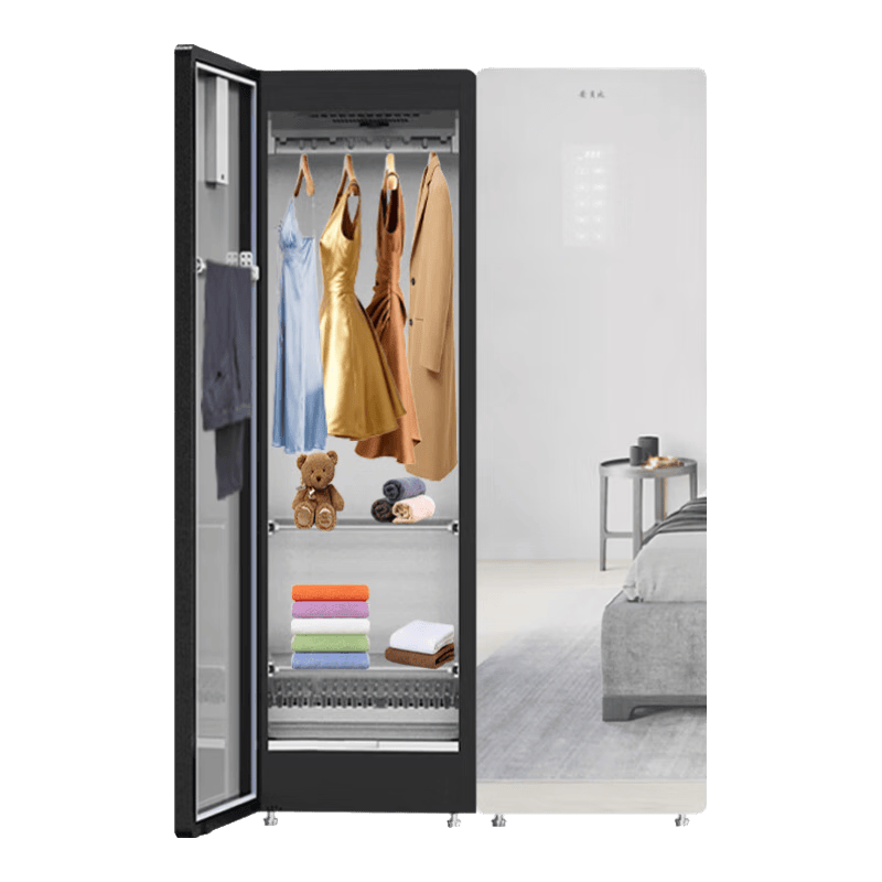 其次,这款护理机具备轻干洗、慰烫和杀菌除螨等多种功能,满足您对衣物的不同护理需求。高温蒸汽均匀渗透衣物纤维,彻底清洁每一个角落,确保您的衣物时刻保持如新。