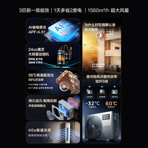 高效静音:这款空调采用行业领先的连续喷气增技术,提供宁静舒适的使用体验,特别适合家庭和办公环境。