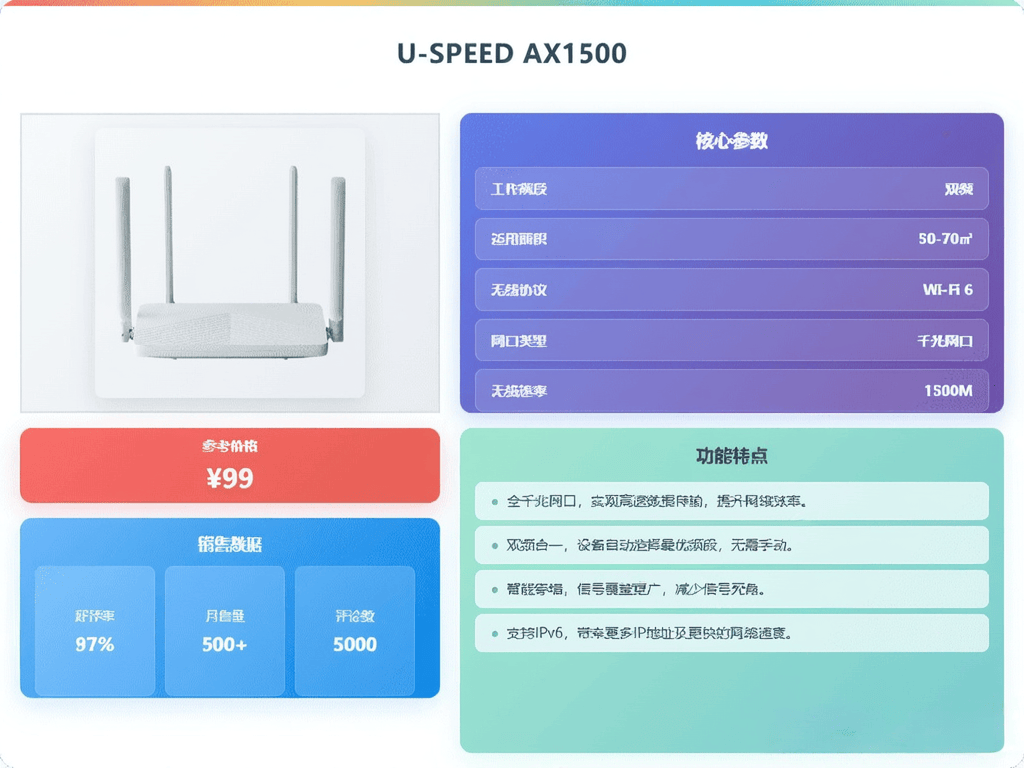 亮点:Wi-Fi6高速传输、多设备稳定连接、全千兆接口支持
