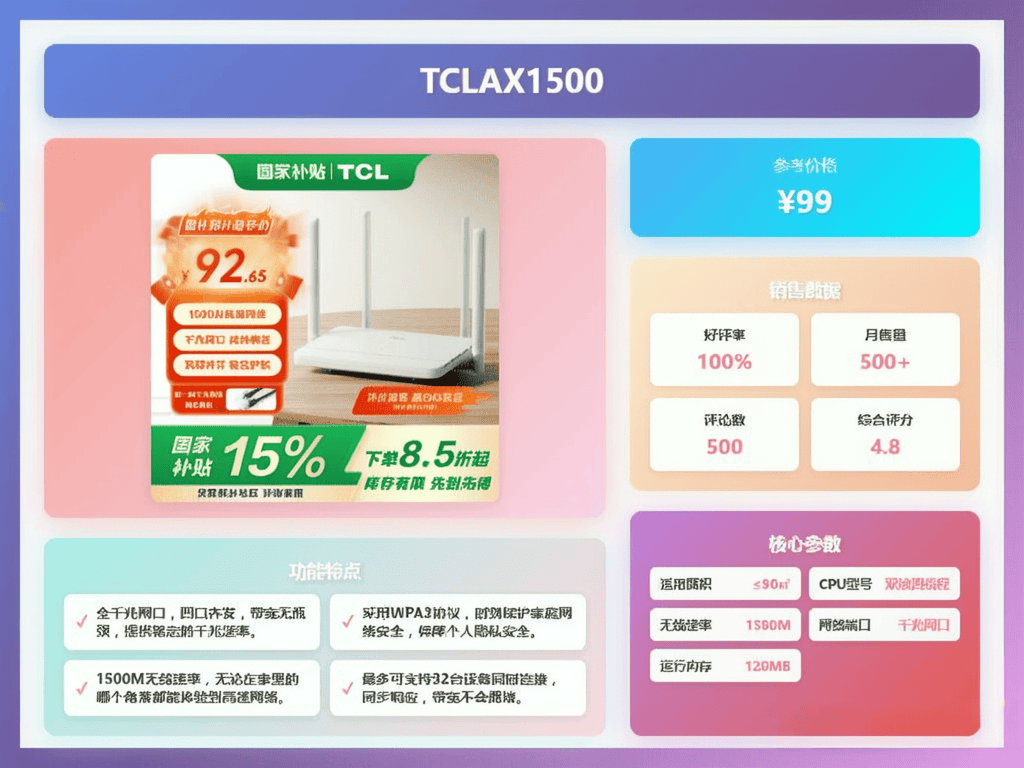 整体来看,TCL AX1500多项技术加持,让家庭组网更加顺畅、稳定,设备响应快,使用体验自然更好。虽然有用户反映信号不佳,但这毕竟是少数,整体性能还是相当靠谱,适合追求高速稳定网络的家庭。