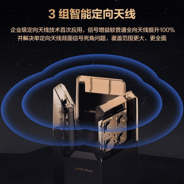 华三NX15000路由器支持Wi-Fi 6技术,配备了3组定向天线和14颗信号放大器,实现全屋无死角覆盖。特别适合150-200㎡的大户型,即使多设备同时在线,也能保持稳定、快速的网络体验。它的信号穿透能力很强,外置天线和FEM模块为信号加码,家中多层、多墙体都不在话下。