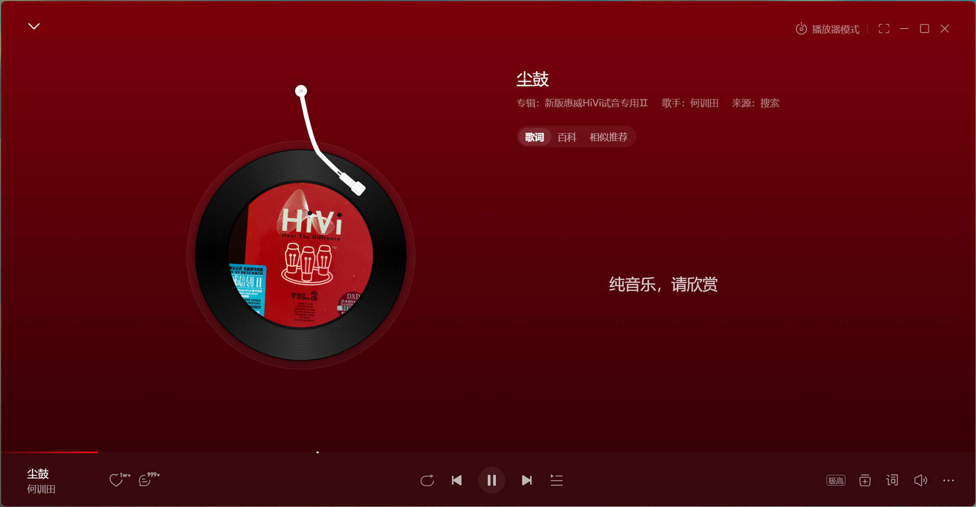 《尘鼓》是中国著名作曲家何训田专辑《波罗密多》中的一首纯音乐曲目。这首以鼓为主要打击乐器的音乐以其层次丰富的节奏、深邃的低频表现成为测试音响低频效果的试音曲。