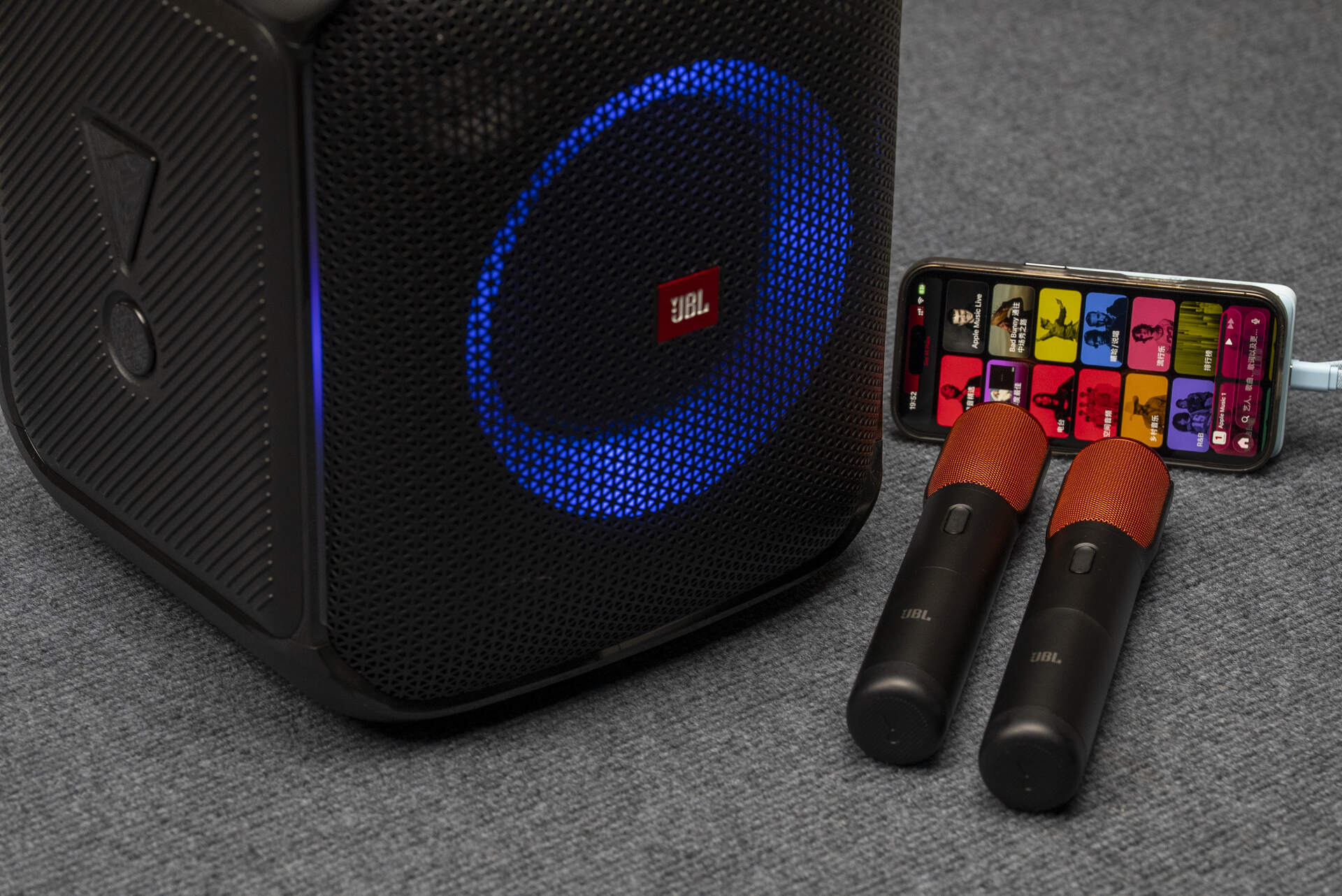 JBL PartyBox Encore附送了两只无线麦克风,用两节五号电池供电,在户外使用可以在更大的范围内移动。这是它相比Vegas稍微有优势的地方。不过在外出使用时一定要准备好电池。