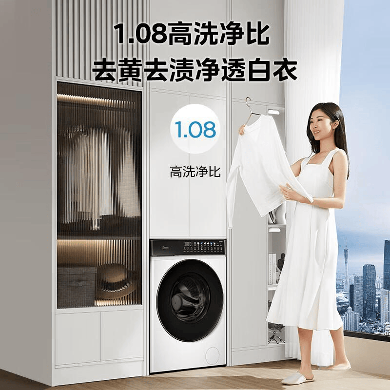 这款洗衣机配备了DD直驱变频电机,能够实现更精准的转速控制,运行时几乎没有噪音,洗涤动力更强,维护也更省心。它的10公斤大容量设计,特别适合三代同堂或需要一次性处理大量衣物的家庭,节省了不少时间和精力。洗净比高达1.08,能有效深层清除衣物上的顽固污渍,让衣服洗得更加洁净透亮。