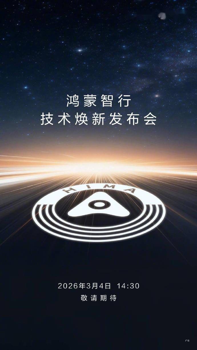 据IT之家今日早些时候报道,华为终端宣布鸿蒙智行技术焕新发布会定档 3 月 4 日 14:30,官方宣传语为:“万象更新,驭见未来。”
