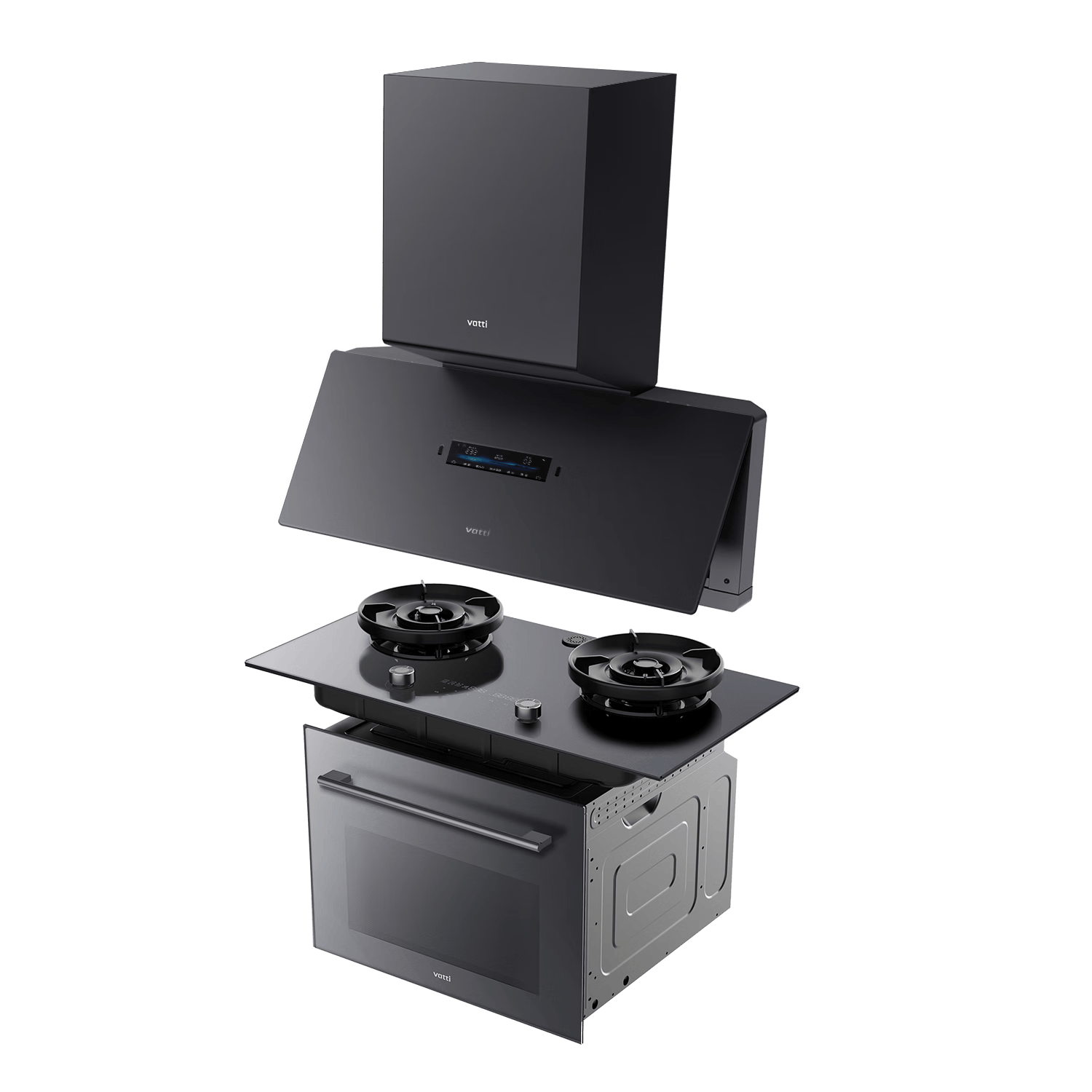 1️⃣一体化设计:将油烟机、灶具和蒸烤功能完美结合,提升厨房整体功能性。