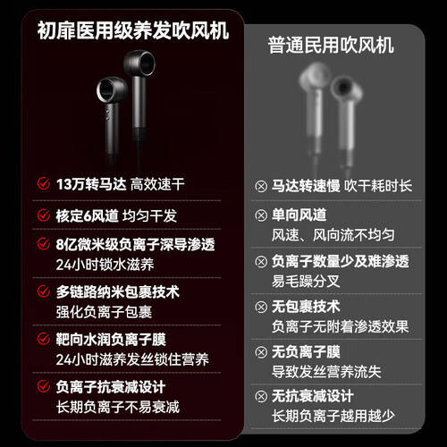 早上闹钟响了三次,头发还湿着就冲出门,地铁里刘海贴在额头上,像刚游完泳;晚上加班回家,想吹个头发放松一下,结果机器一开,“嗡——”一声震得猫跳上柜子,连视频会议都得暂停;更别说用了一年半,风力越来越虚、出风口烫得不敢碰、发尾越吹越毛躁,最后只能靠“甩干+自然晾”硬扛……