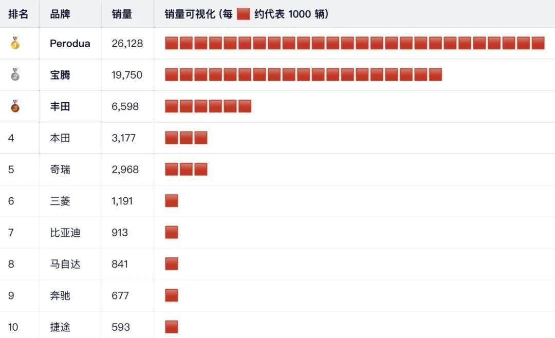当然,市场领导者Perodua依然以26128辆的销量保持领先,但环比下降29%的数据说明,差距正在缩小。随着Perodua新款SUV Traz与宝腾焕新升级的轿车系列正面交锋,马来西亚的“B级车之战”正变得越来越有看头。