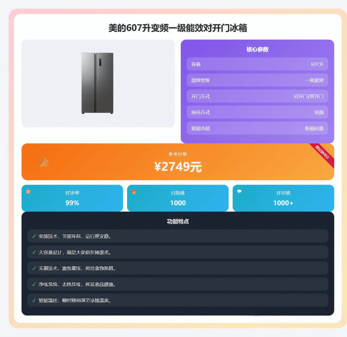 优点:微晶保鲜、智能净化、设计优雅。