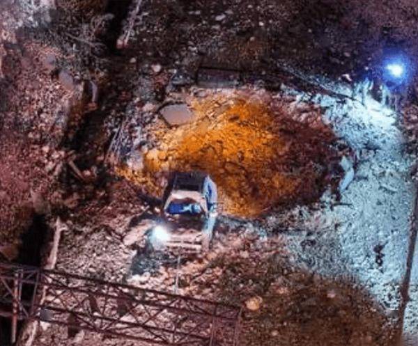 现场画面显示,导弹爆炸后形成明显弹坑,威力巨大,这辆元PLUS就在爆炸波及范围内,且距离爆点相当近。