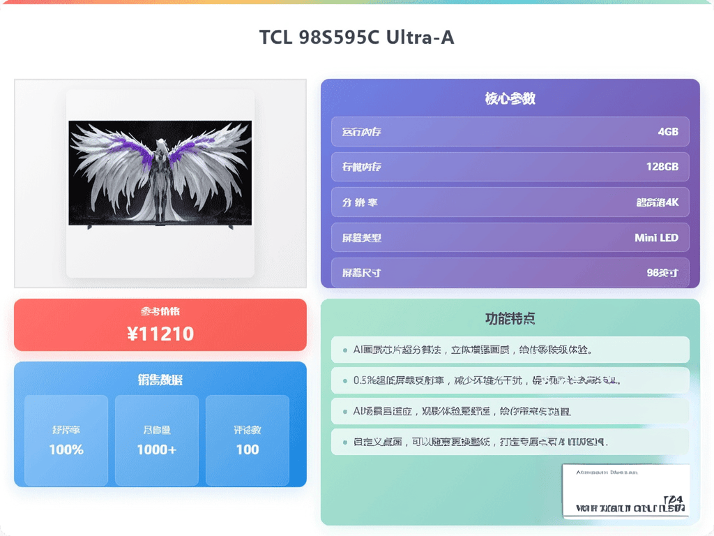 如果你打算一步到位选购98/100寸的TCL电视,那可得好好琢磨琢磨。首先,尺寸是关键,98寸和100寸在视觉冲击力上肯定不一样,得根据你家客厅的大小来决定最合适的尺寸。别盲目追求大,到时候看着难受就糟了。其次,画质方面要关注Mini LED技术,这直接影响到画面亮度、对比度和色彩。最好选择带有QD-Mini LED技术的,色彩会更鲜艳,细节也更丰富。
