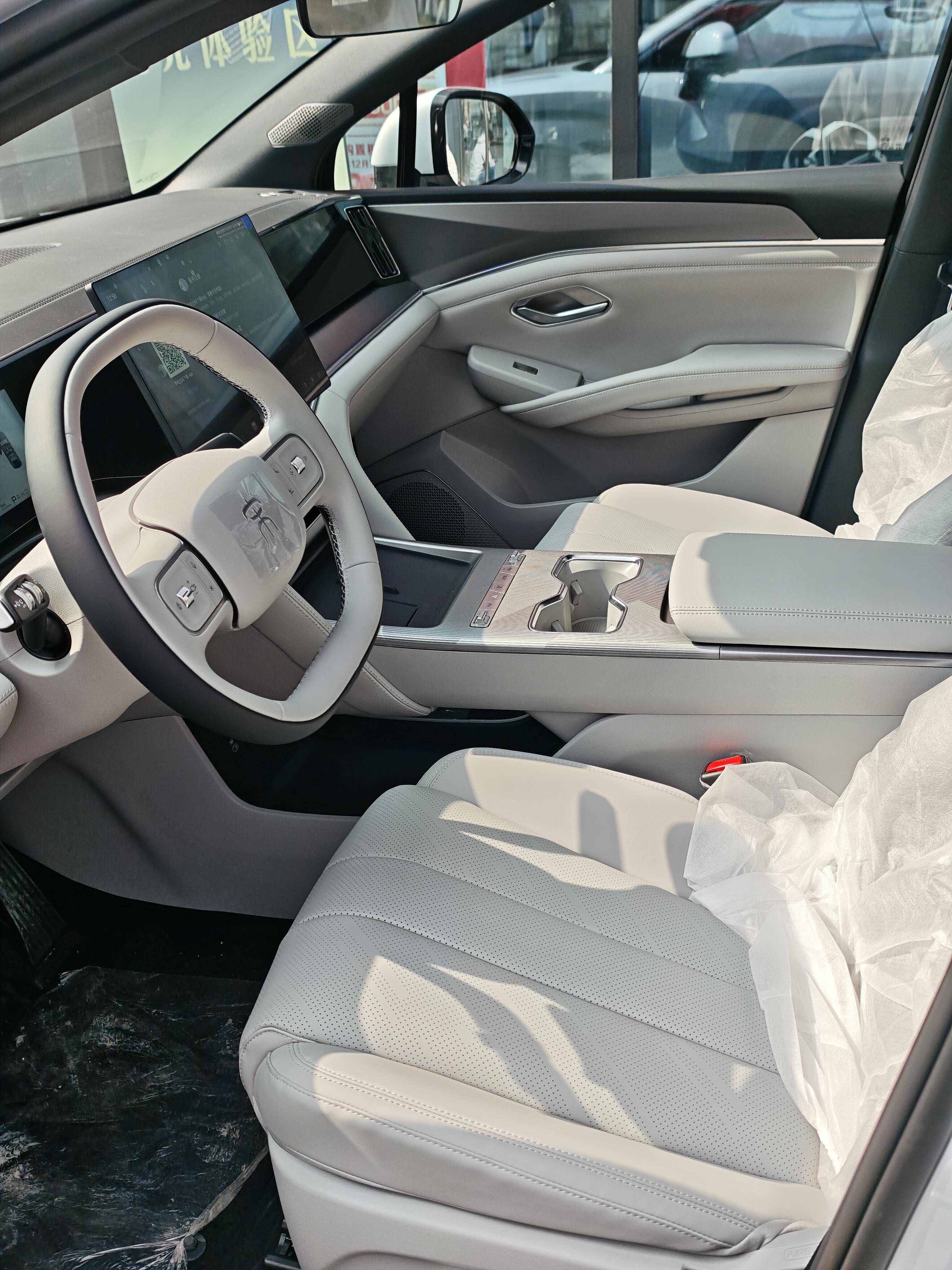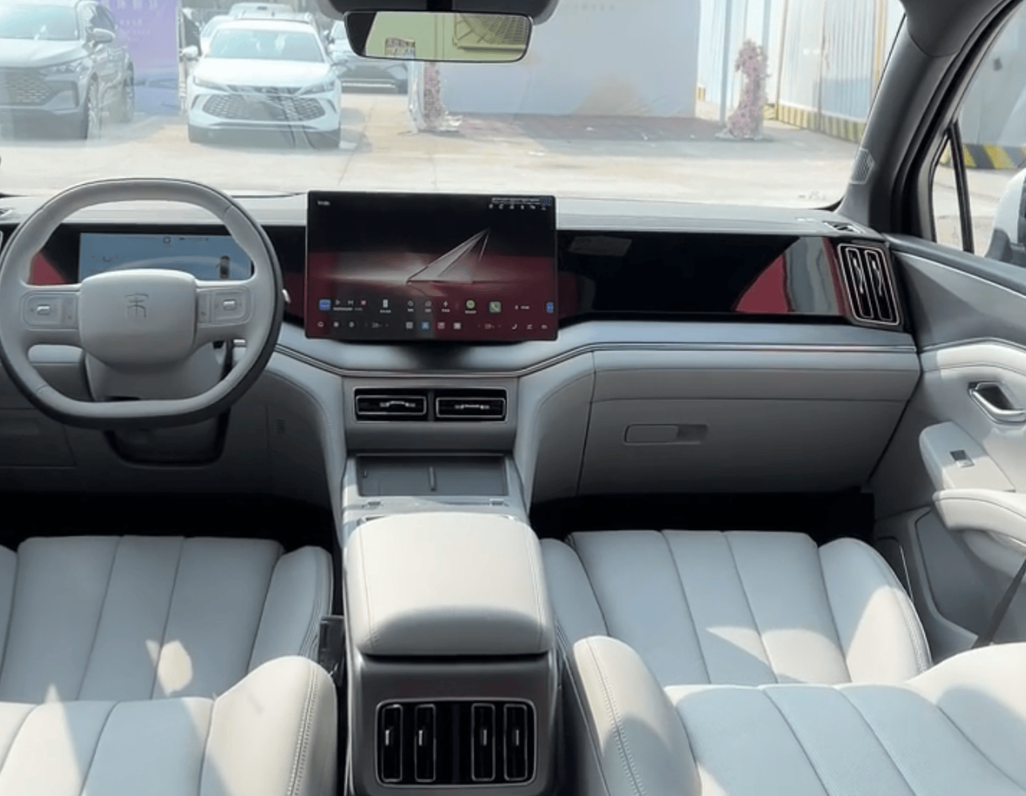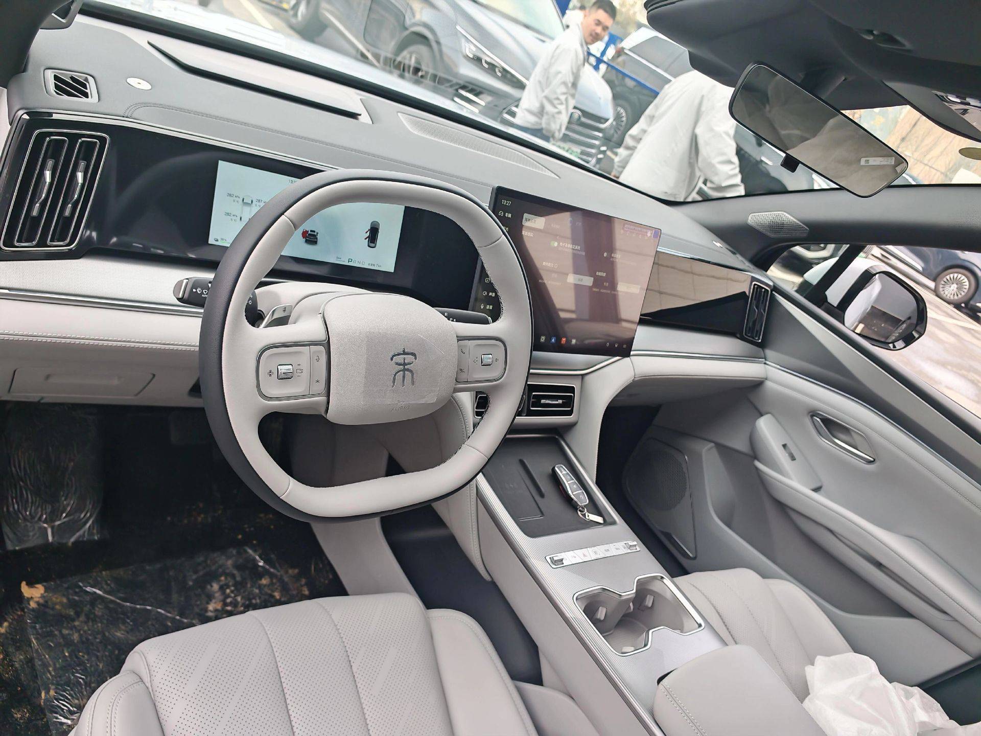 内饰也是宋L DM-i的那一套设计语言。简洁的环抱式中控台上通过钢琴烤漆饰板以及镀铬饰条贯穿,左右各内嵌全液晶仪表屏和副驾智能3D景深氛围灯,加之15.6英寸悬浮式中控屏以及W-HUD抬头显示,营造出科技氛围,并升级DiLink 6.0车机UI,增加“魔方传声筒”功能。另外还将采用全新双幅式多功能方向盘+电子怀挡,镂空副仪表台上提供50W手机无线快充、智能冷暖冰箱等。