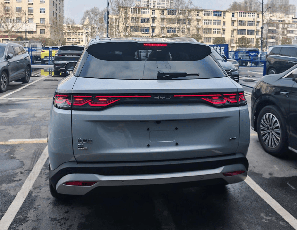 尾部的LED“流光瑞结”贯穿式尾灯也没有缺席,并在中间加入“BYD”小字标识。多层次感的熏黑后包围配备粗壮的银色梯形饰件,与前脸相呼应,给人感觉很有敦实稳重感,而不规则尾翼则进一步提升了运动气息。另外还可以看到“闪充”尾标,新车充电功率或可达到1500kW。