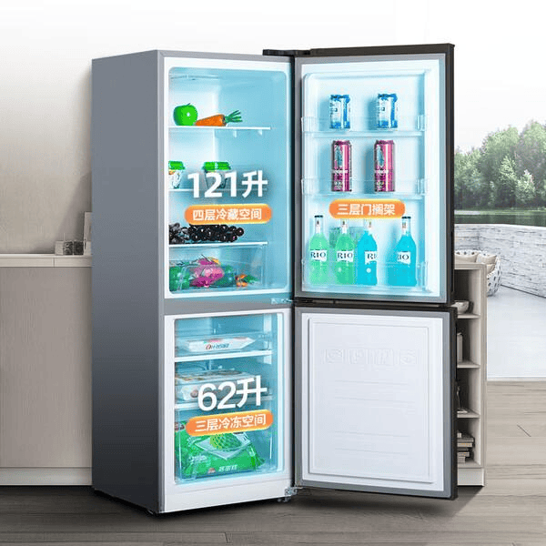 183升容量:这款冰箱容量适中,适合三口之家或宿舍使用,空间分布合理,有四层冷藏和两层冷冻,分类存放不易混乱。