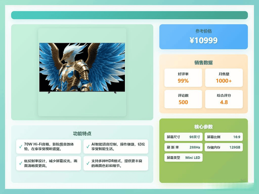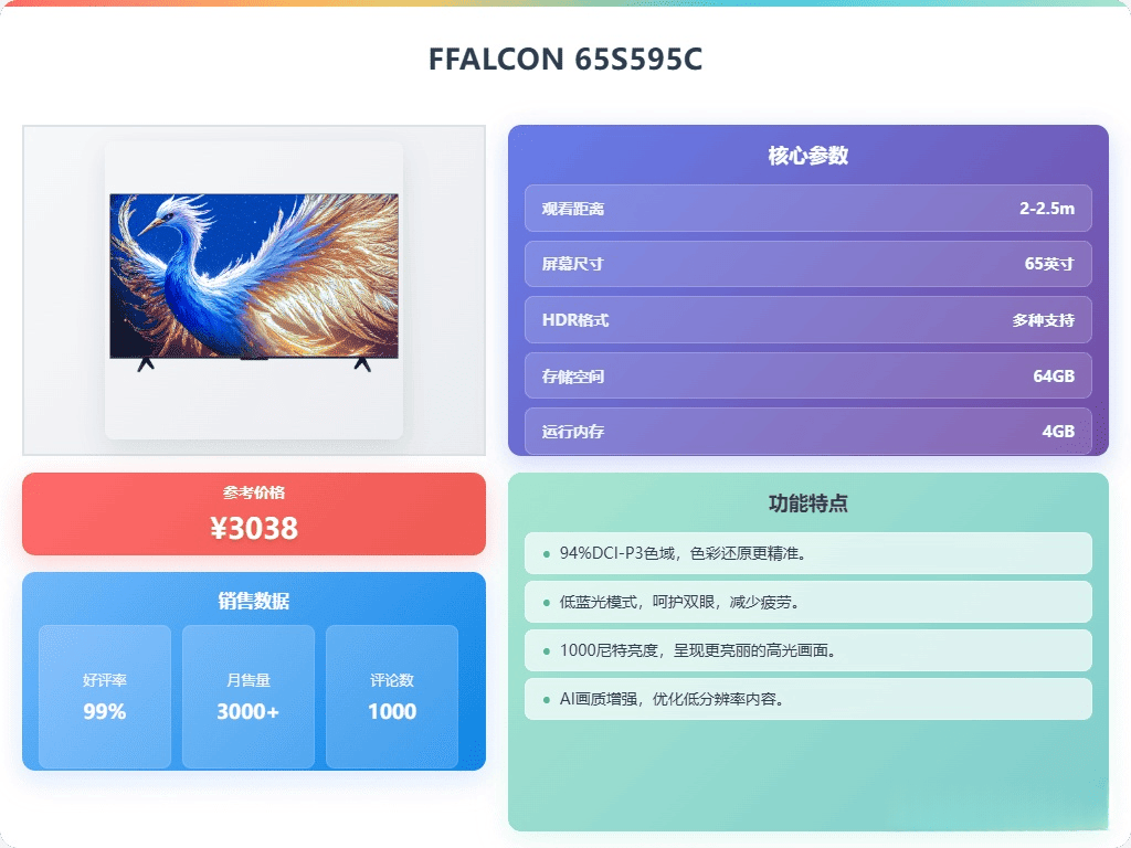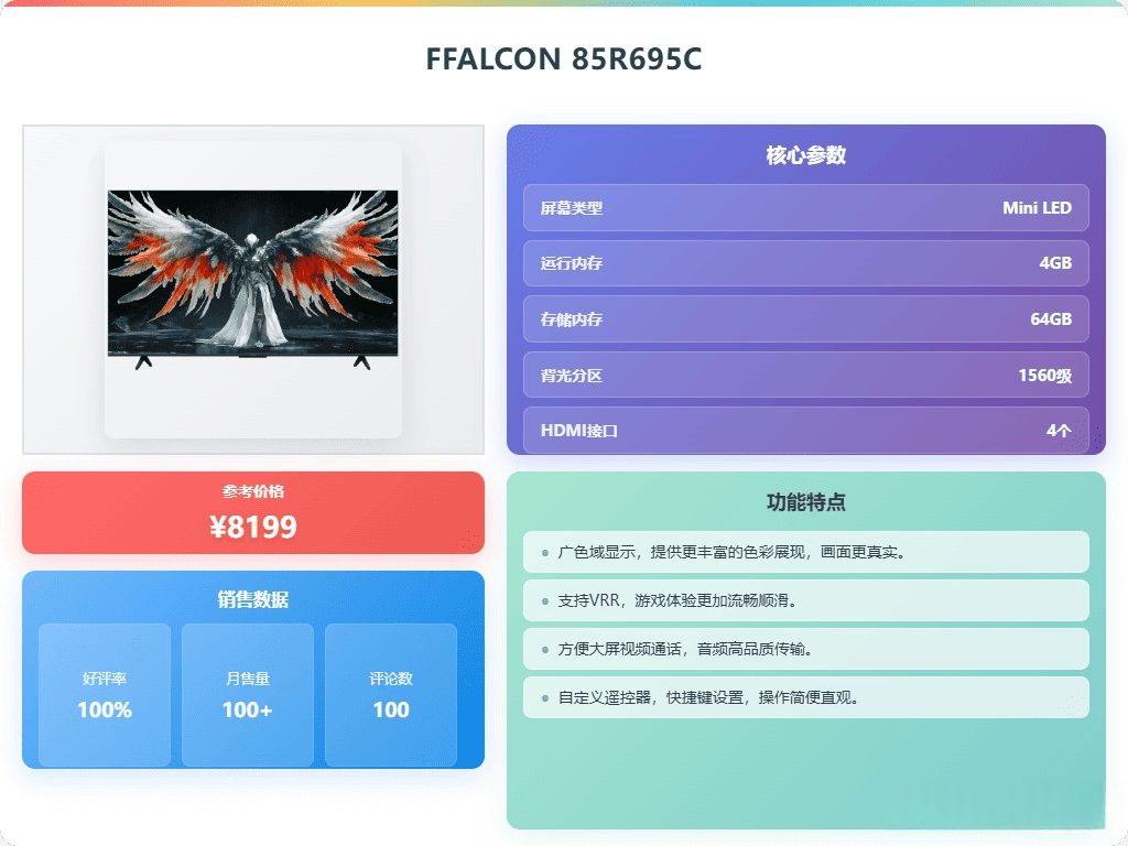 当然,单靠参数是无法做出明智的选择的,实际体验才是关键。选购电视时,实用性是最重要的,不能仅仅追求高科技,还要考虑到客厅的大小、预算等因素。为了帮助大家更好地选择,我整理了6款口碑不错的FFALCON雷鸟MiniLED电视,它们都是性价比高且实用的选择。如果你也想提升观影体验,不妨看看以下推荐。