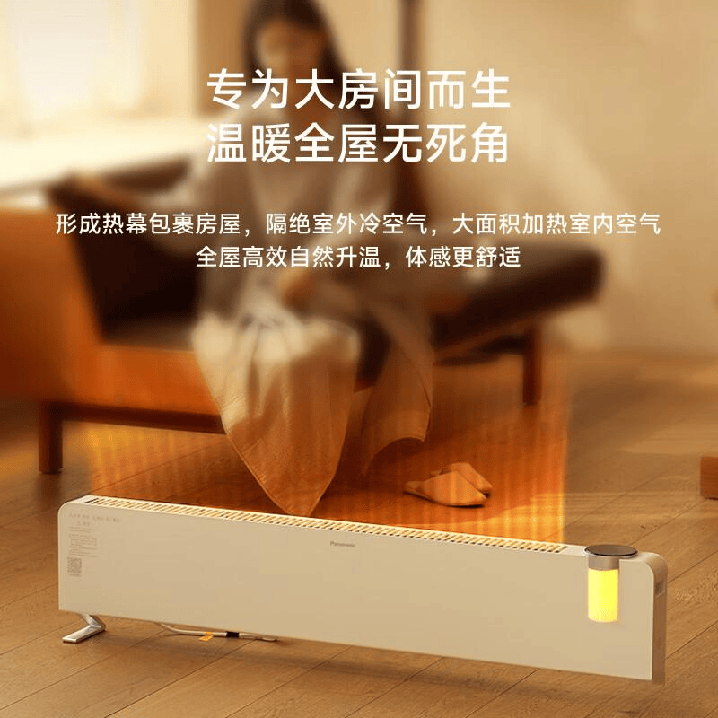 松下DS-A2155CW采用石墨烯加热技术,能在短短10分钟内快速升温,为家中带来持续稳定的温暖感受。其踢脚线设计不仅节省空间,还能实现空气流通与均匀加热,特别适合墙角或难以布置传统取暖器的位置。