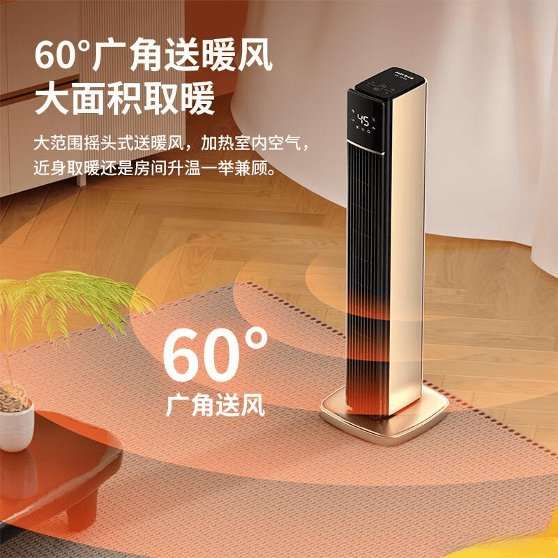 环抱式送风设计,加上左右广角摇头功能,让暖流能更均匀地覆盖室内空间,提升了温暖分布的均衡性,非常适合需要全屋暖气的家庭使用。