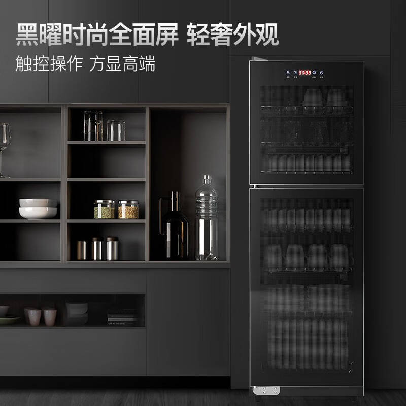 这款消毒柜采用前沿紫外线技术,确保每个角落都能高效消毒,杀菌率高达99.99%。它的大容量设计非常适合家庭使用,尤其是有婴儿的家庭,确保奶瓶和奶嘴的彻底清洁。升级的大屏触控使得操作更加简单,即使是老人也能轻松使用。