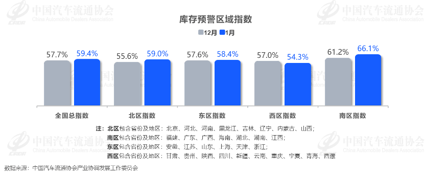 从区域指数情况看:1月全国总指数为59.4%,北区指数为59.0%,东区指数为58.4%,西区指数为54.3%,南区指数为66.1%。