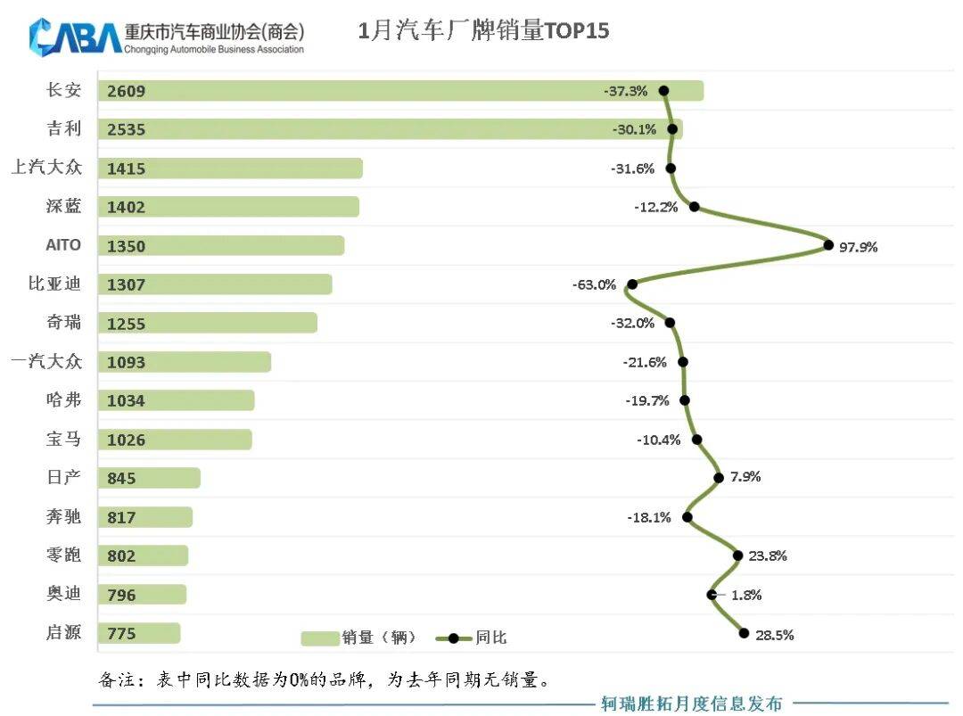 重庆汽车厂牌销量TOP15