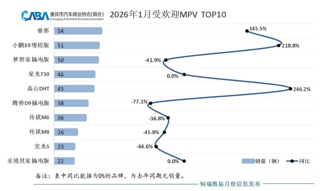 尽管进入前10的车型销量在两位数,但其同比变化却异常强烈。比如赛那同比增长145.5%、小鹏X9增程版同比增长218.8%、高山DHT(销量45辆)同比增长246.2%。