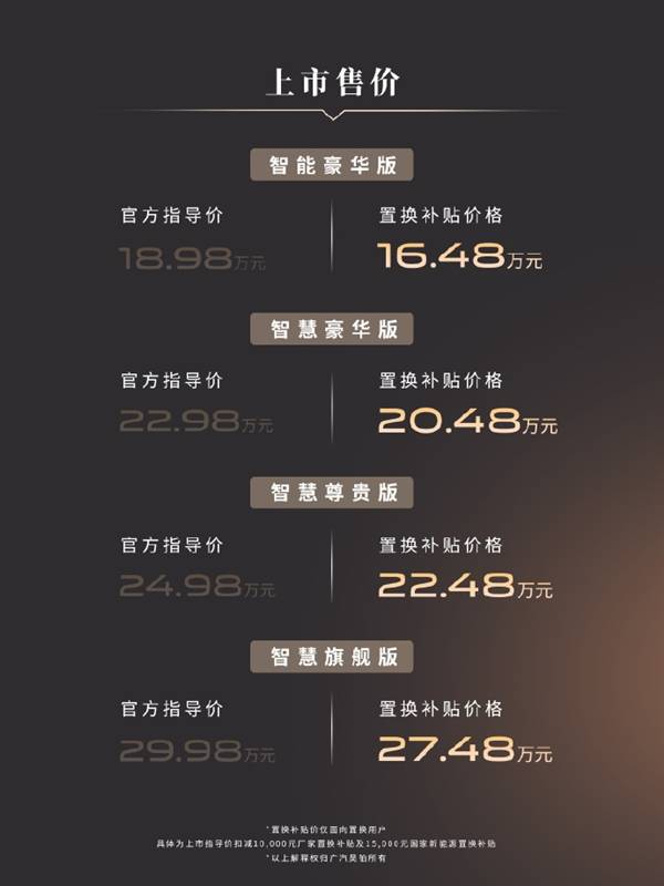 置换16.48万元起!广汽昊铂A800正式上市:尊界S800同款896线四激光雷达