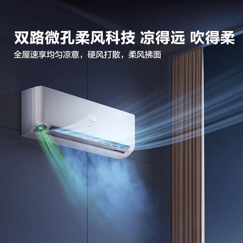 这款空调最大的亮点在于AI洁净新风功能,能够主动引入室外新鲜空气,并排出浑浊空气,让室内空气变得更加清新。无论是想呼吸新鲜空气还是改善空气质量,这个功能都非常实用。