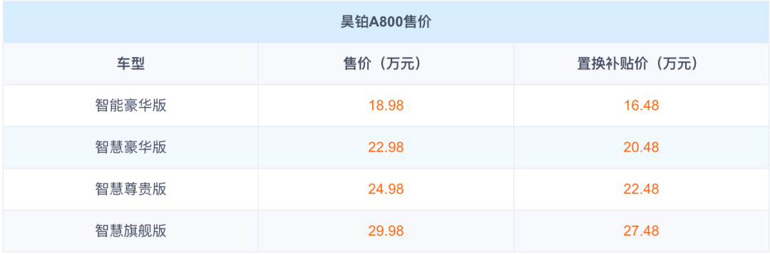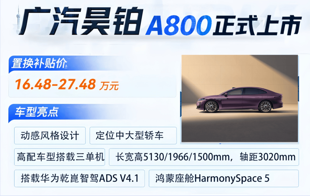 它就是3月4日刚上市的昊铂A800,指导价18.98-29.98万,置换后16.48-27.48万。最狠的不是价格低,而是它把“行政轿车体验”直接压进了A6L终端区间。
