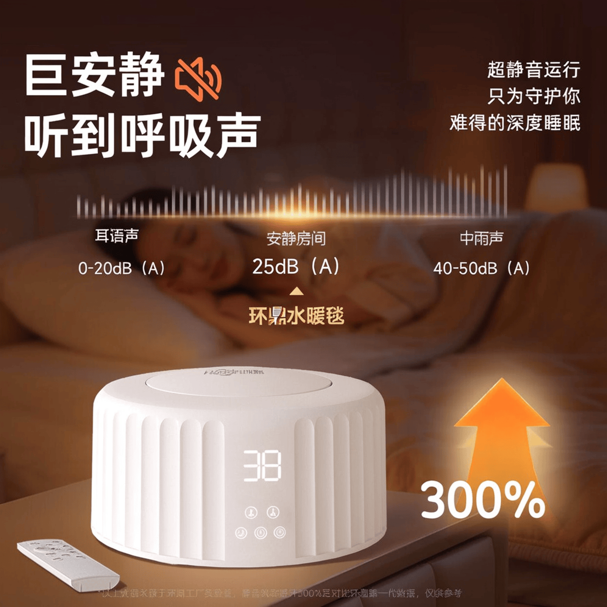 主机运作时有轻微水泵声(类似鱼缸氧气泵),对睡眠极轻的人可能需适应,但放在床尾柜上基本听不见。