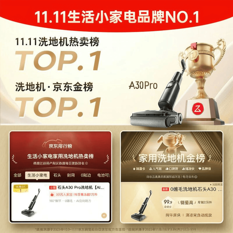 - 养宠/毛发多家庭:推荐石头A30 Pro(0缠毛+高温除菌)。