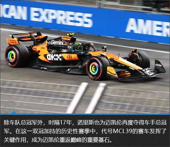 从重夺车手总冠军到实现车队总冠军的背靠背卫冕,2025赛季无疑是迈凯伦F1车队、车手以及车迷都值得铭记的一年。迈凯伦Artura Spider MCL39 Championship Edition正是为这一历史时刻所打造的纪念之作。尤其对于诺里斯而言,当看到车内记录着2025赛季每一场分站冠军的字标时,或许也会让他再次回想起夺得个人首个世界冠军时的至高荣耀与激情瞬间吧。