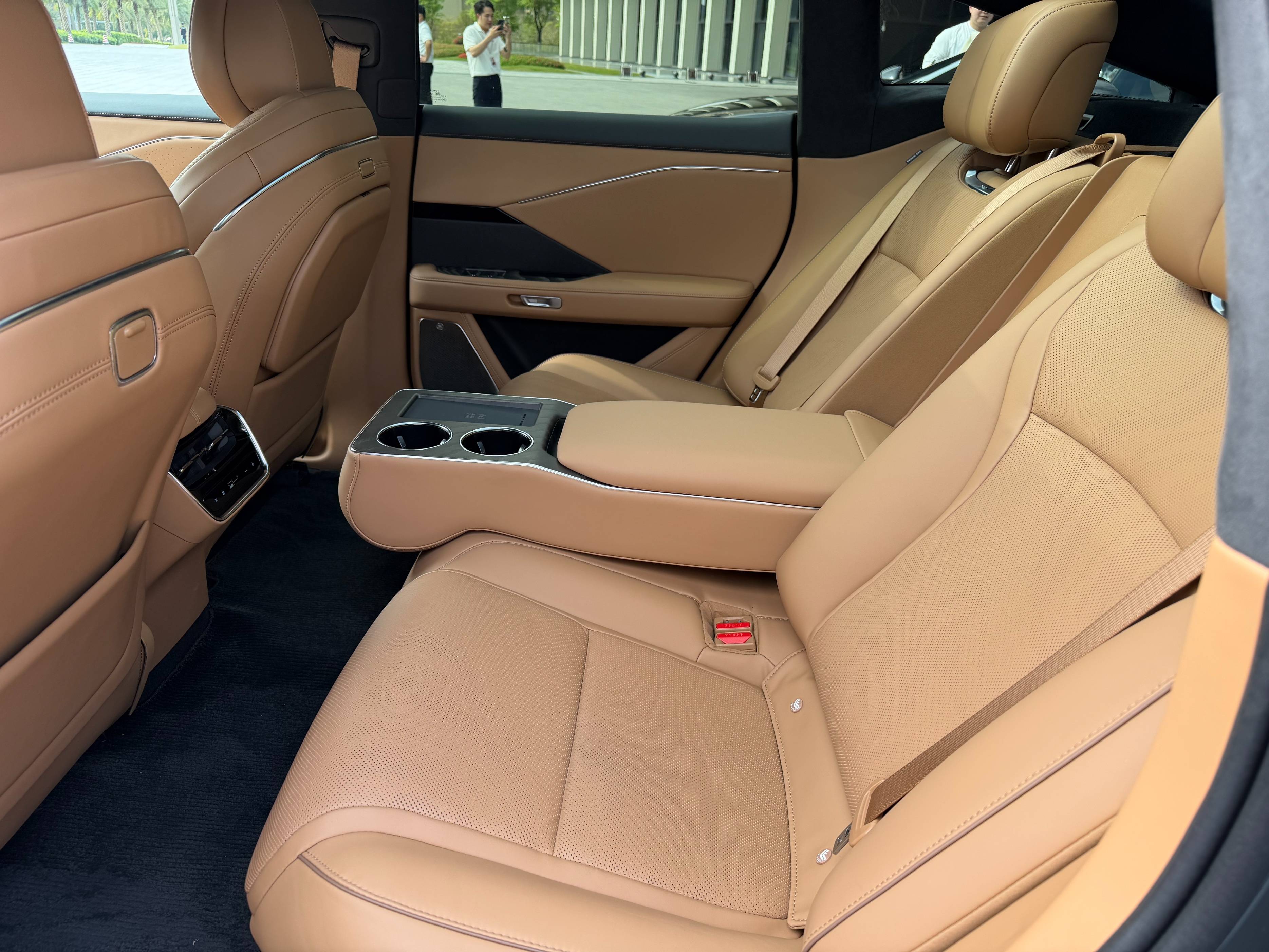 内饰方面,铂智7以“雅·质”为核心,主打简约豪华,兼顾舒适性与实用性,彻底告别了合资车型内饰简陋、功能单一的刻板印象。车内大面积采用软性材质包裹,搭配近百年白栓木饰板和顶级头层牛皮NAPPA座椅,营造出浓郁的豪华质感,同时避免了过度奢华的油腻感。中控台采用极简布局,配备15.6英寸悬浮中控屏,搭配全液晶仪表和AR-HUD抬头显示,形成多屏联动,操作便捷直观。由于采用怀挡设计,中控台下方预留出充足的储物空间,配备无线充电面板和快捷按键,兼顾了实用性与便捷性。车内还配备了多色氛围灯、全车多扬声器音响系统,第二排配备零重力座椅、后排小桌板甚至车载冰箱,3020mm的长轴距让后排腿部空间十分宽裕,纯平地台设计也让中间乘客能够从容落座,不管是前排驾驶还是后排乘坐,都能获得舒适的体验。