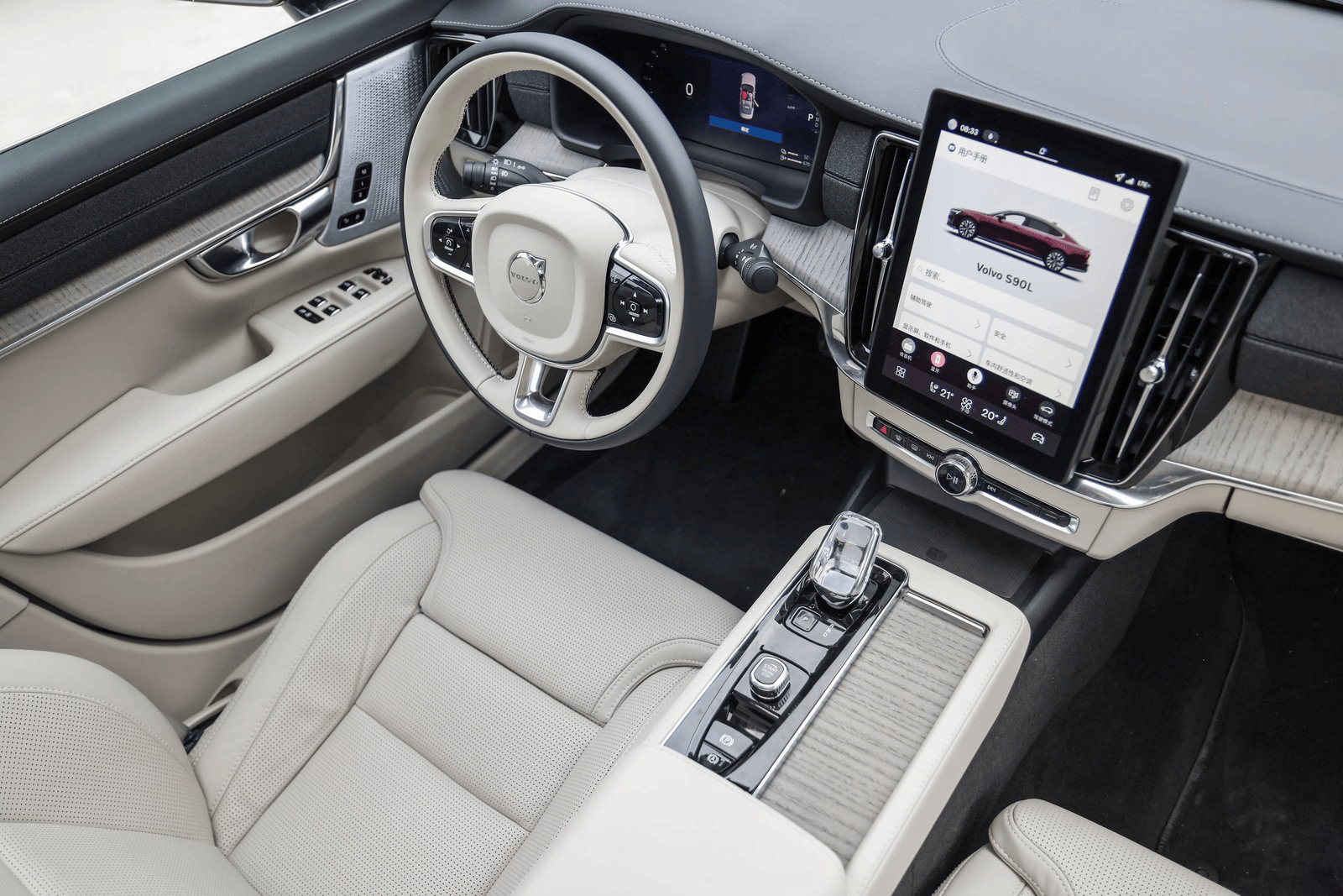 如果说外观是S90的气质名片,那么内饰便是它的灵魂所在,藏着对健康与舒适的极致追求。对于一台可能陪伴十年甚至更久的座驾,内饰的价值从来不是大屏的堆砌或氛围灯的花哨,而是材质的耐久与空间的温润。全新S90的座舱堪称“移动的健康堡垒”,全车禁用6000余种有害物质,采用婴儿可接触级环保面料,搭配SSD水溶性阻尼垫与食品级丁基胶,从源头杜绝异味,即便经过65℃高温暴晒,VOC浓度也仅为0.01mg/m³,比国标限值低90%。