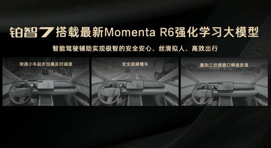 辅助驾驶方面,该车搭载 Momenta R6 强化学习大模型,支持城市 NDA 领航辅助、高速 NDA 领航辅助(支持城市快速路场景)、自动泊车 FAPA、遥控泊车 RPA、记忆泊车 HPA、透明底盘等功能,含激光雷达在内的 27 个传感器实现 360° 感知。