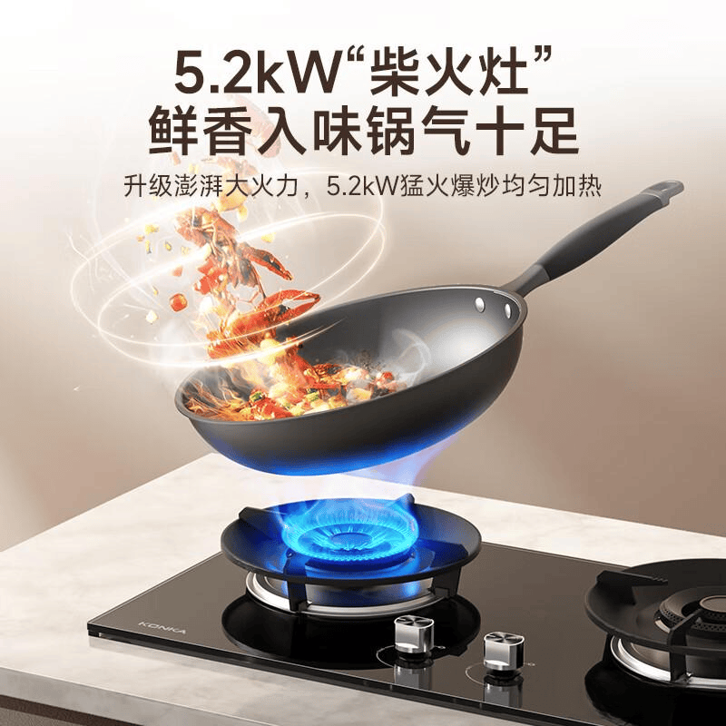在选购煤气灶时,首先要关注火力!毕竟我们中国人做饭讲究“猛火快炒”,火力不够,炒出来的菜就少了那股锅气,味道也差不少。一般来说,5.0kW以上的火力就足够日常使用了,如果经常爆炒,那5.2kW甚至更高的火力会更给力。